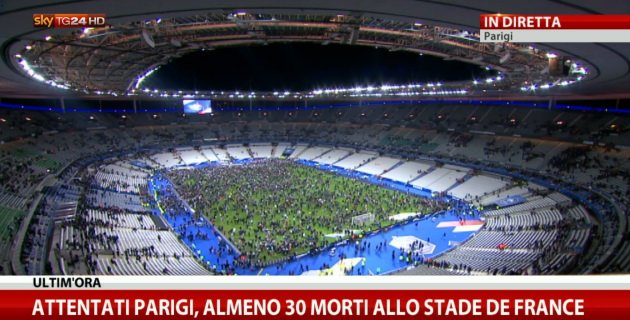 terörün futbola sirayet ettiği kara gündür efendim. fransa almanya maçı öncesi alman milli takımının kaldığı otel bomba ihbarı üzerine boşaltılmıştır. ayrıca maçın bitmesi sonrası taraftarların güvenlik sebebiylestade de france'dan ayrılmalarına izin verilmemiştir.