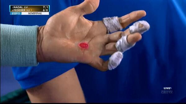 nadalin yine eli açıldı. gerçekten üzülmemek elde değil. maçın kaderini değiştirebilecek bir sorun bu. umarım hissetmemeye çalışır.