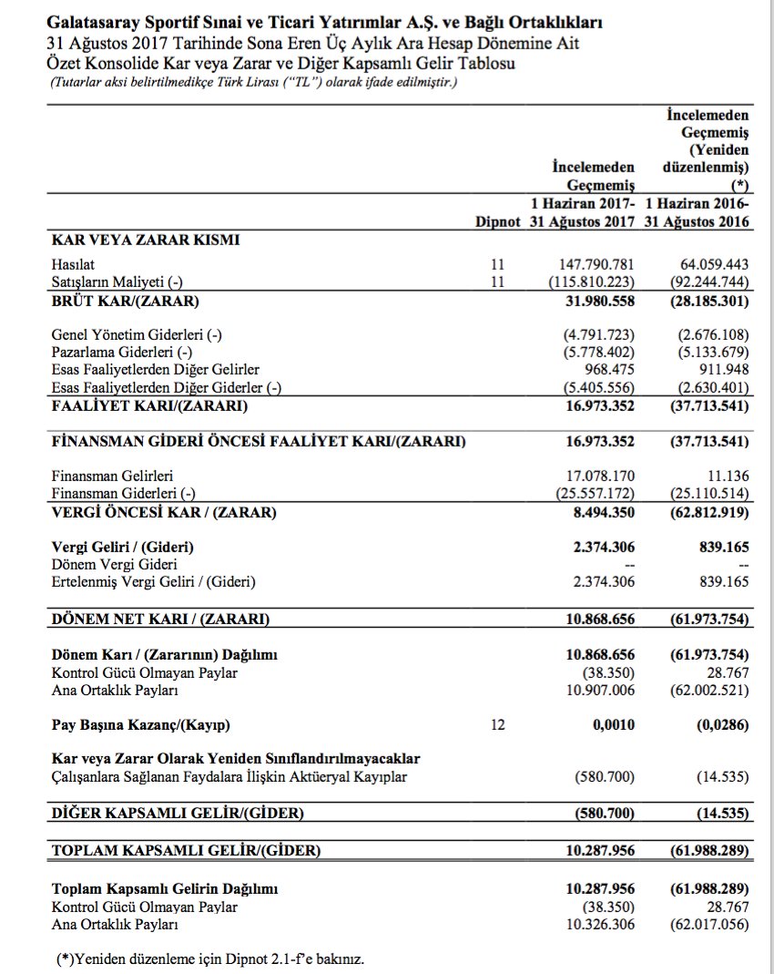 galatasaray'da yeni sezonun ilk 3 aylık mali verileri açıklandı. açıklanan verilere göre kar edildiği gözüküyor. ancak detaylar önemli !