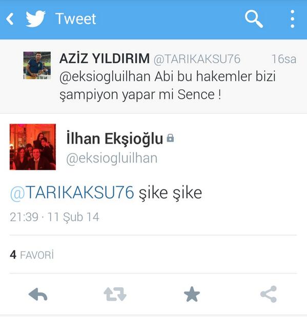 şike cezası kesinleşmiş ilhan ekşioğlu denilen zad, twitter hesabında 2013-2014 sezonuyla ilgili görüşünü belirtiyor. https://pbs.twimg.com/media/BgRq4KiIEAAnyNu.jpg