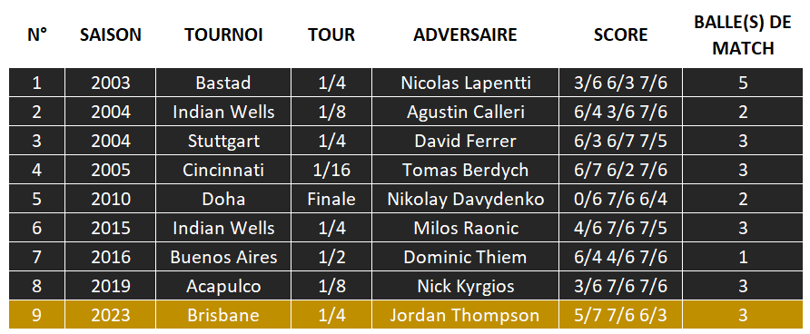 jordan thompson karşısında terlemekte olan yaşlı kral. maç puanı kaçırdı, tie-break'te de 3-0 ve 6-4 üstünlükleri yakalamasına rağmen son 2 maç puanını da değerlendiremedi. daha 2 sette 2 saat 45 dakikayı bulan maç bir de 3. sete kaldı. bu yorgunlukla atik thompson'ı geçse bile yarı finalde dimitrov'u yenmesi zor.